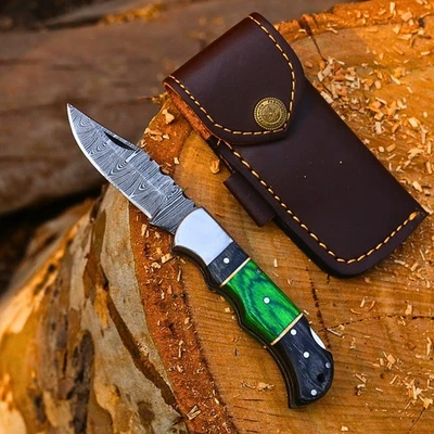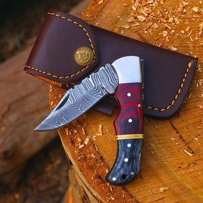Ashen Edge ATS-34 Steel Dual Blade Folding Knife Engraved D2 Tool Steel