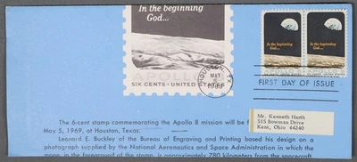 MayfairStamps US Space FDC 1969 Pair Apollo 8 First Day Cover aax_29673