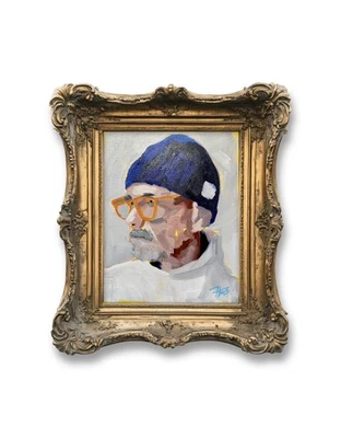 FTM3 Original Portrait Oil Painting “Blue Beanie” Signed 8 x 10” NO RESERVE!