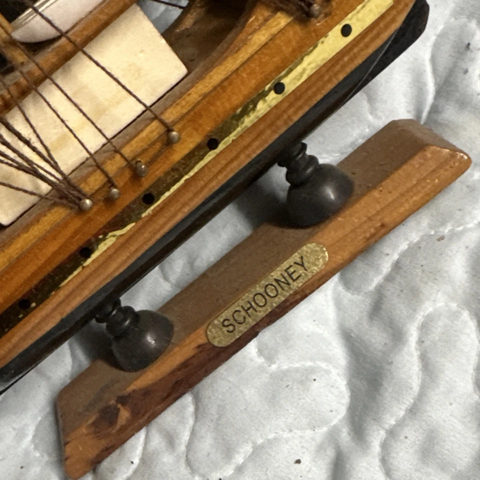 Wooden Schooner Ship Model Nautical Decor with Stand Brown Beige Pre-built