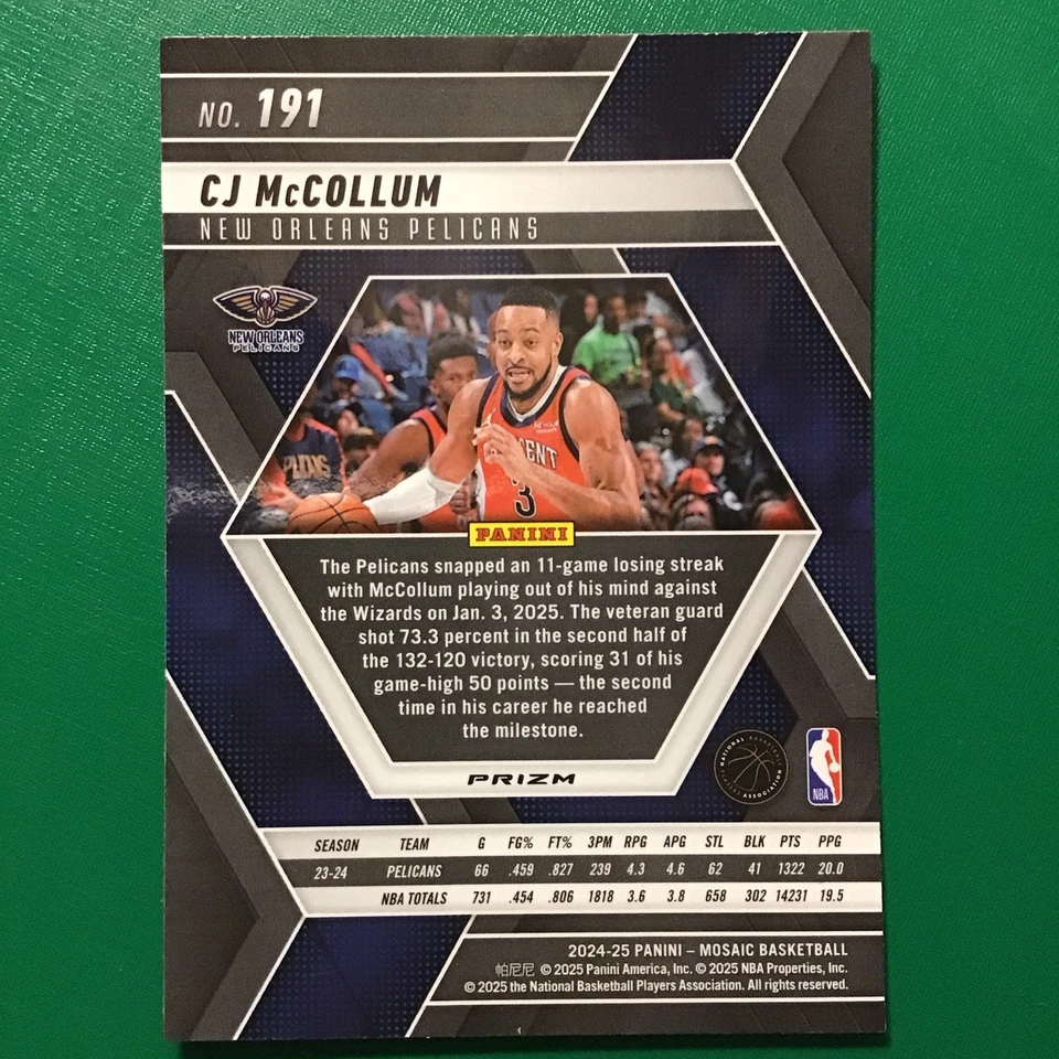 2024-25 Panini Mosaic CJ McCollum #191 Silver Mosaic Prizm Portland Trail Blazer