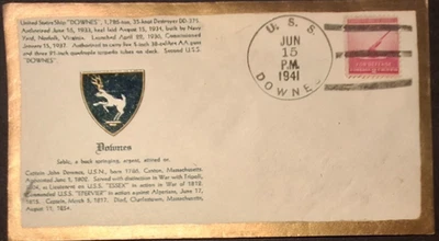 US Navy postal cancelation stamp U.S.S DOWNES 1941 Jun.15 sank in Pearl december
