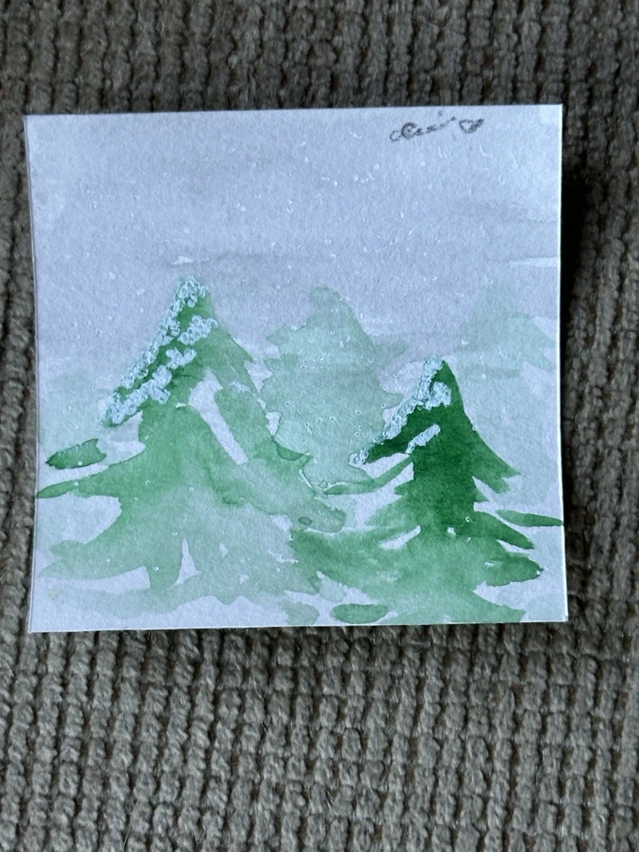 Original Watercolor Painting 3x3 Snowy Forest Signed