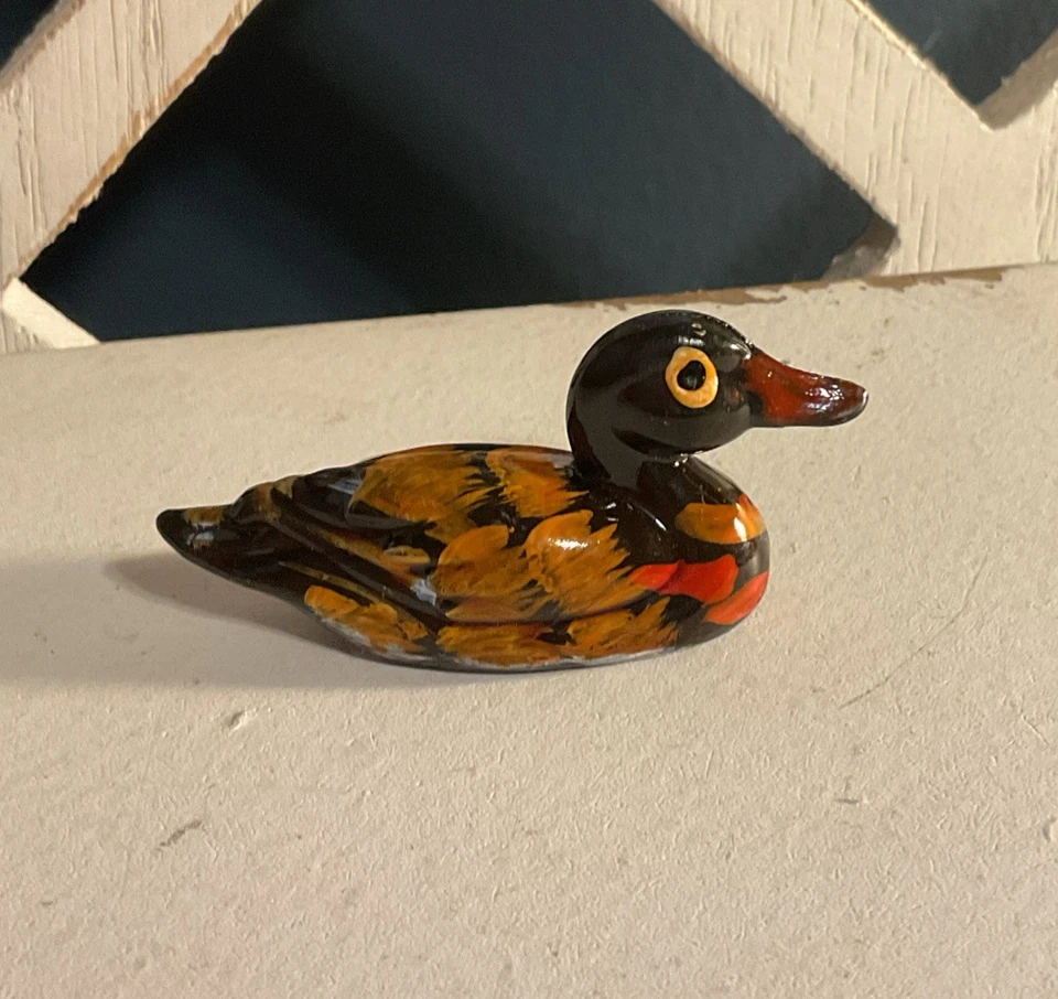 Vtg 2” Micro Mini Mallard Wooden Duck Figurine, Hand painted