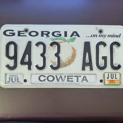 Vintage Georgia Peach License Plate on my mind 9433 AGC last decal 2012
