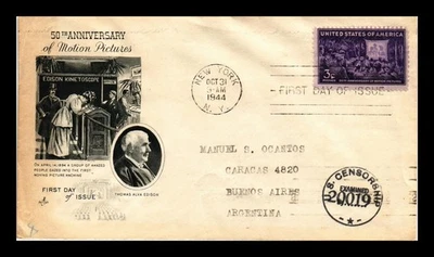DR JIM STAMPS US COVER MOTION PICTURES FDC SCOTT 926 ARTCRAFT WWII CENSORED