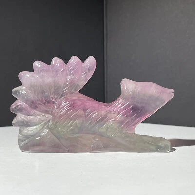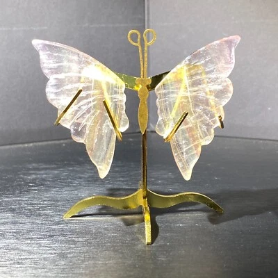 Natural Crystal Fluorite Butterfly Wings Healing Statue Decor + Stand