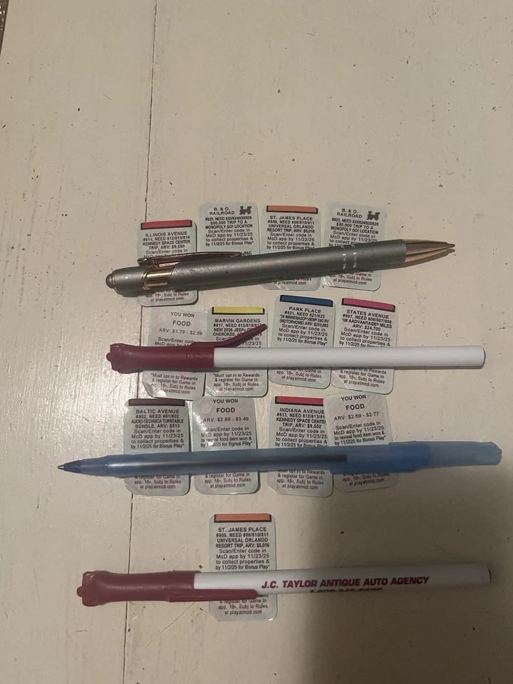 Lot Of 13 Monopoly Property Codes 2025 Promo- Unredeemed Limited Duplicates