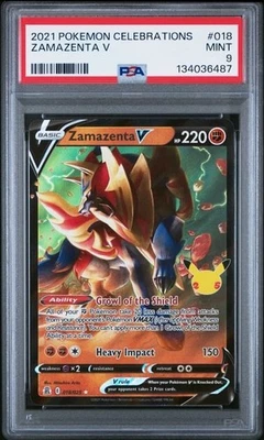 PSA 9 ZAMAZENTA V 018/025 - CELEBRATIONS 25TH ANNIVERSARY HOLO - MINT