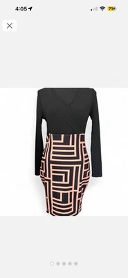 Women’s Black and Light Pink Geometric Dress Long Sleeve Size Small NWT