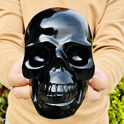 4.77LB Natural obsidian hand-carved skull quartz crystal skull specimen