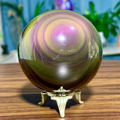 303G AAA Grade Natural Rainbow Eye Obsidian Quartz Crystal Sphere Energy Healing