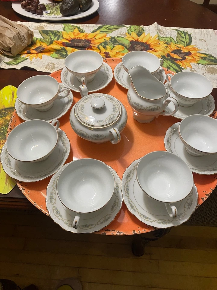 Vintage 1930s “M” CAMEO 3553 tea set for 8 with sugarbowl and creamer