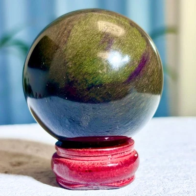 187G AAA Grade Natural Rainbow Eye Obsidian Quartz Crystal Sphere Energy Healing