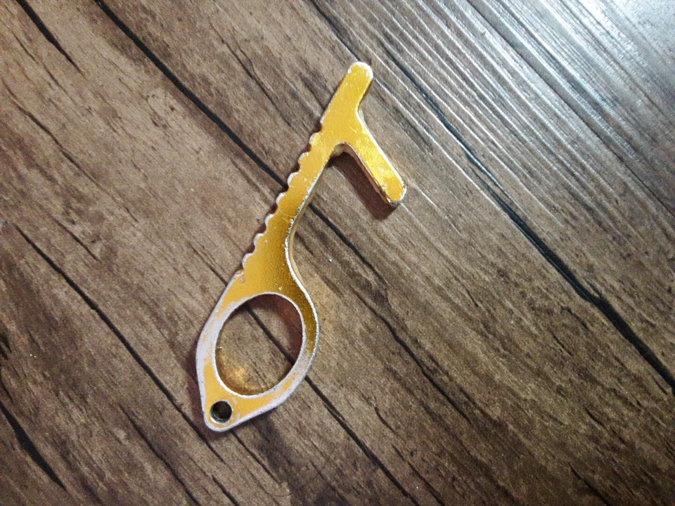 Contactless Door Opener Gold Tone Button Pusher Keychain
