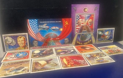 EQ.GUINEA = RUSSIA & USA in SPACE S/S , STAMPS CTO APOLLO-SOYUZ VON BRAUN & MORE