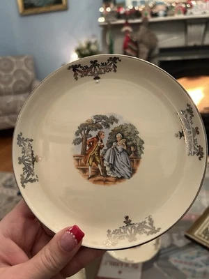 Salem China Company Colonial Couple, 23 Karat Gold, Dessert Plates x4Mid Century