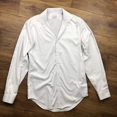 Calvin Klein Men Sz M White Long Sleeve Button Up Shirt *Stains *Read