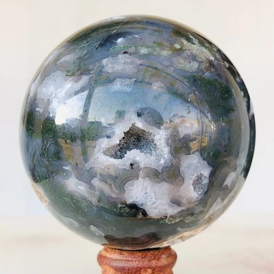 788g Natural Moss Agate Quartz crystal Sphere Mineral specimen Healing AK206