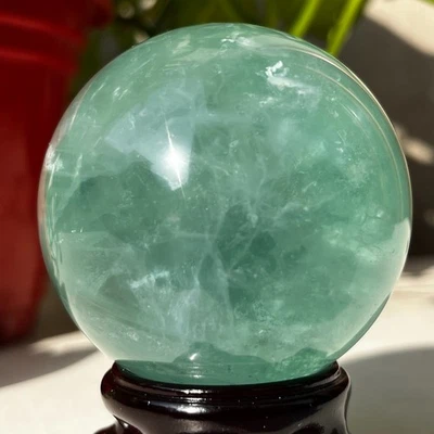 333g Natural Green Fluorite Quartz Ball Crystal Sphere Meditation Healing
