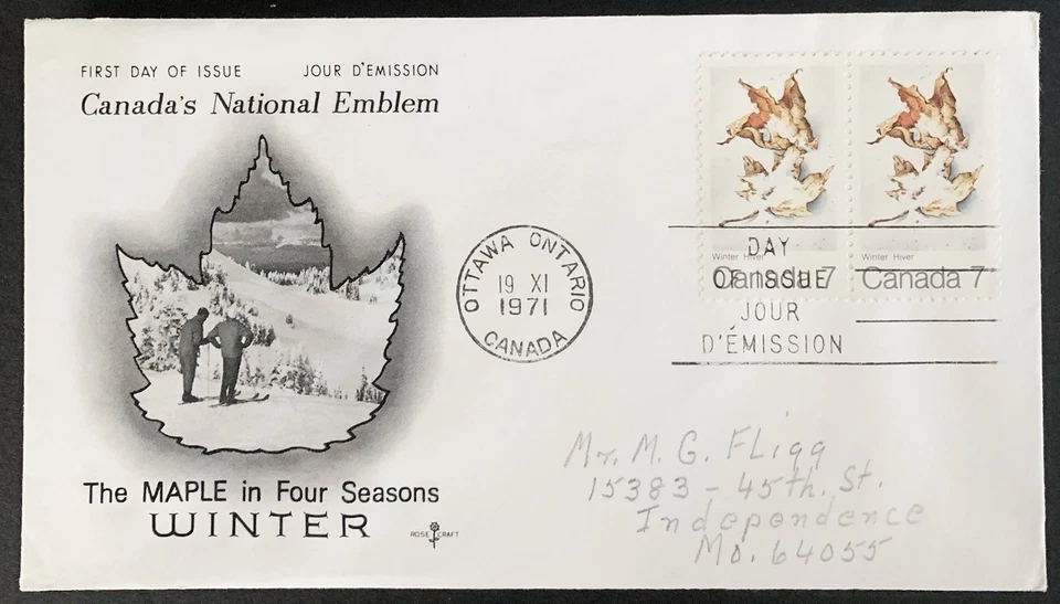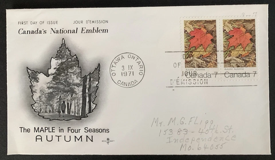 FLX Stamps Canada 537 Maple Leaf Autumn, Rose Craft, FDC