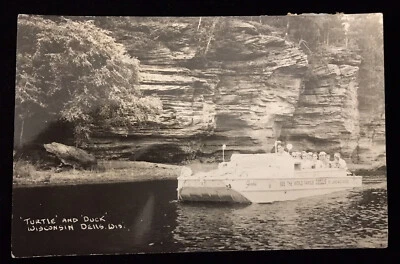 Unposted Postcard TURTLE AND DUCK, WISCONSIN DELLS VTG REAL PHOTO POSTCARD RPPC