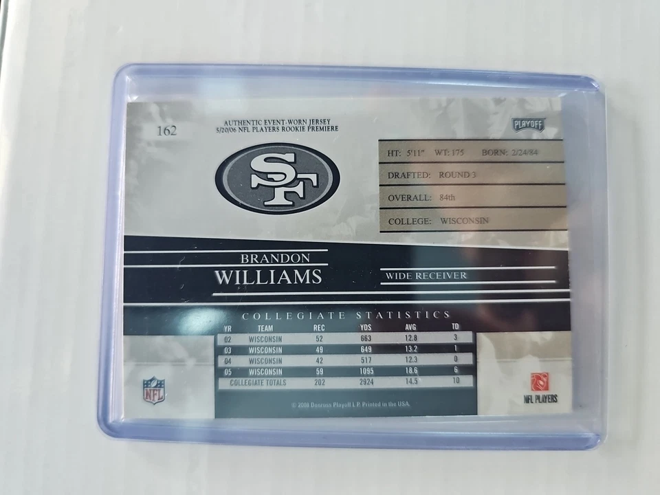 2006 Playoff Prestige Brandon Williams Rookie Relic Jersey Card #162 S.F 49ers