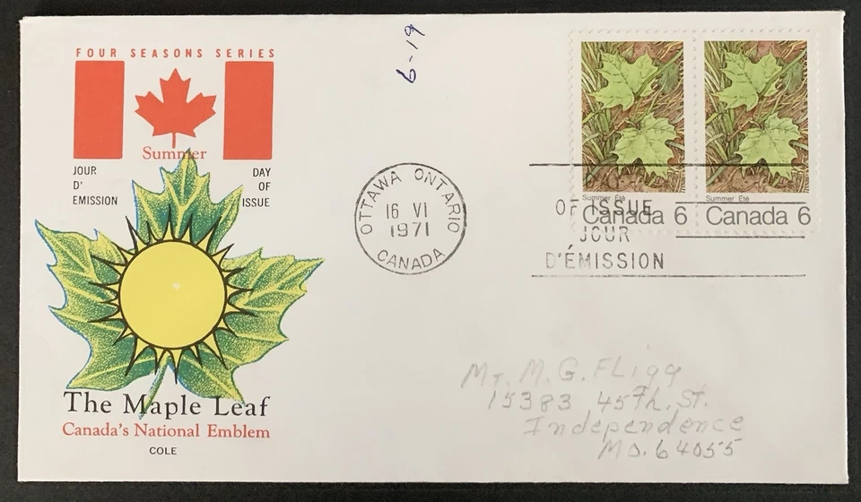 FLX Stamps Canada 536 Maple Leaf Summer, Cole, pair, FDC