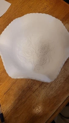 Imperial glass Ohio Rose Milk glass three footed crimped bowl