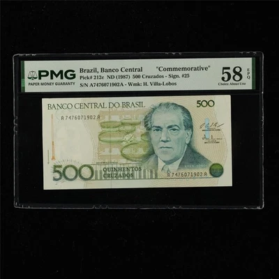 1987 Brazil Banco Central 500 Cruzados"Commemorative"Pick#212c PMG 58 EPQ UNC