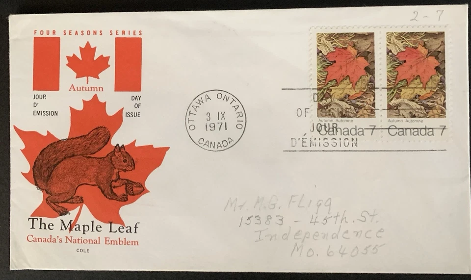 FLX Stamps Canada 537 Maple Leaf Autumn, Cole, pair, FDC