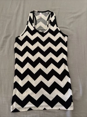 Cute Black and White Zigzag Racerback Tank Top Small