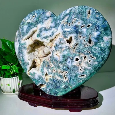 21.78LB Natural green aquatic plant heart-shaped crystal specimen