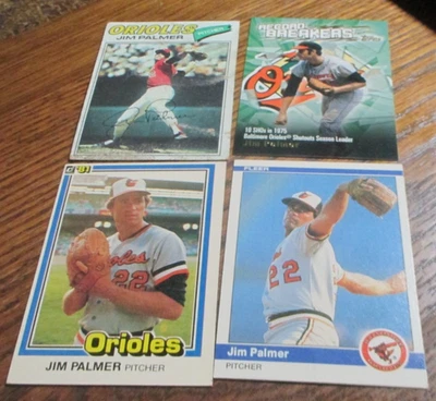 4) Jim Palmer baseball cards Baltimore Orioles HOF '77 Topps '81 Donruss Fleer