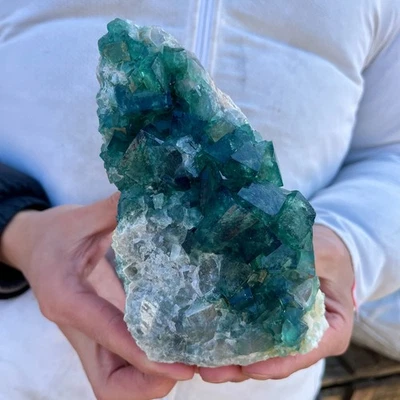 3.3lb Natural Green cube FLUORITE Quartz Crystal Cluster Mineral Specimen