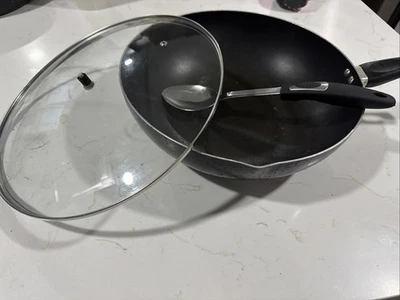 13'' Wok Pan Non-Stick Stir-Fry Pans w Lid and Spoon Flat Bottom Not Sure Of Br