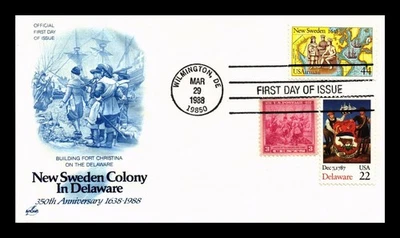 DR JIM STAMPS US COVER NEW SWEDEN 350TH ANNIVERSARY 44C AIR MAIL FDC COMBO