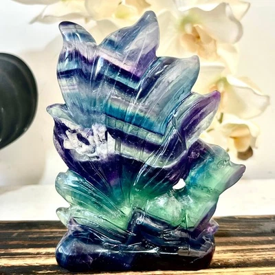 1.39LB Beautiful Colored Fluorite Hand Carved Crystal Healing