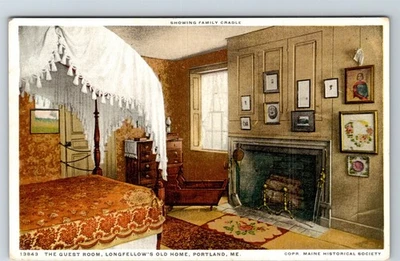 S07-2295, GUEST ROOM, LONGFELLOW'S OLD HOME, PORTLAND, ME., ANTIQUE POSTCARD