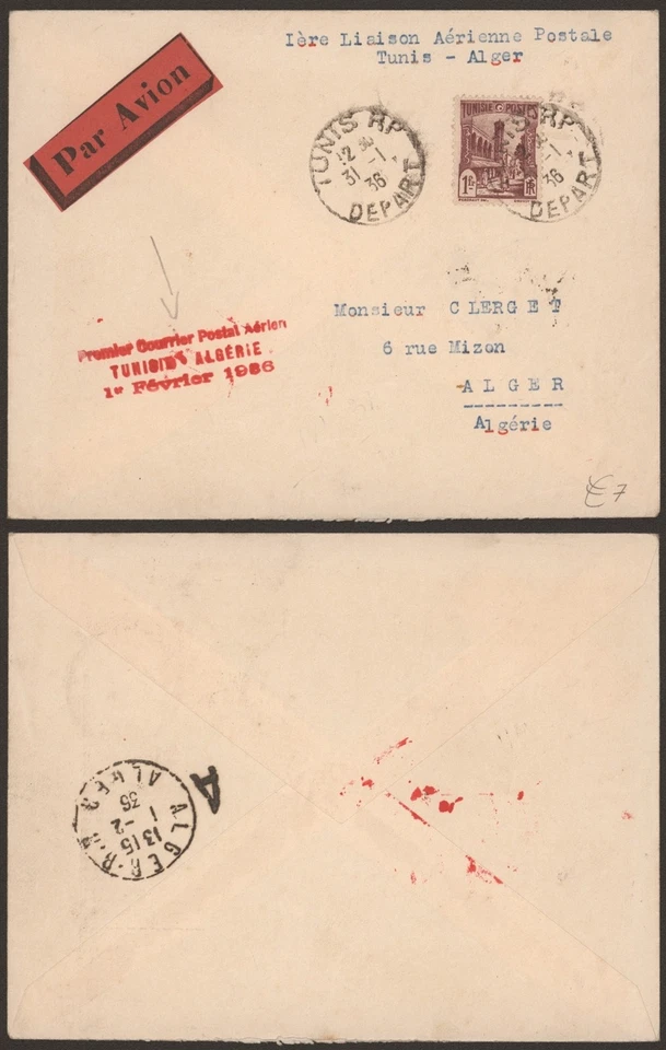 Tunisia 1936 - Air Mail Cover Flight to Algeria I517