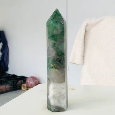 590g Natural Africa Green Agate Quartz Crystal Obelisk Mineral Healing AK290
