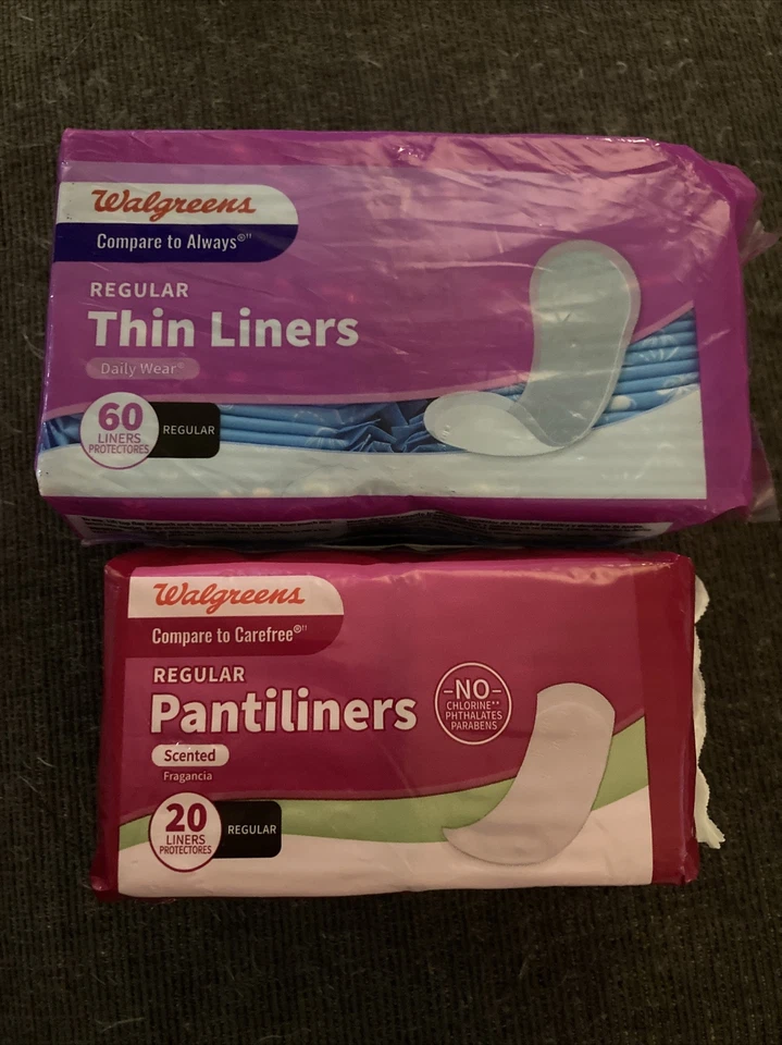 2-Pack Walgreens 20 Regular Scented PantiLiners & 60 Regular Thin Liners.