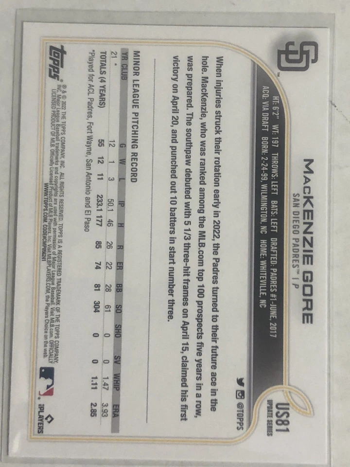 2022 Topps Update Series - Mackenzie Gore #US81 (RC)