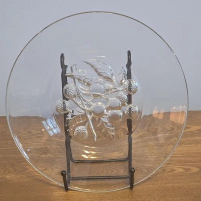 Clear Pressed Glass Fruit Pattern Plate, Round, 8 Inch