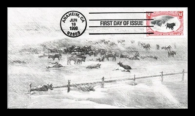 US COVER WESTERN CATTLE IN STORM $1 TRANS-MISSISSIPPI FDC HAND MADE S&T CACHETS