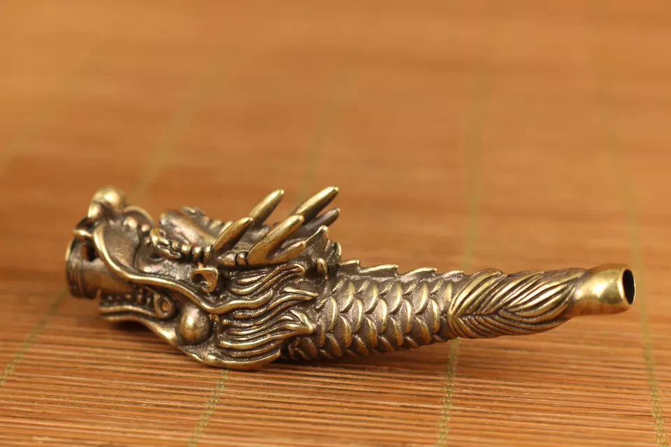Exquisite chinese old copper hand carved dragon statue pipe smoking tool