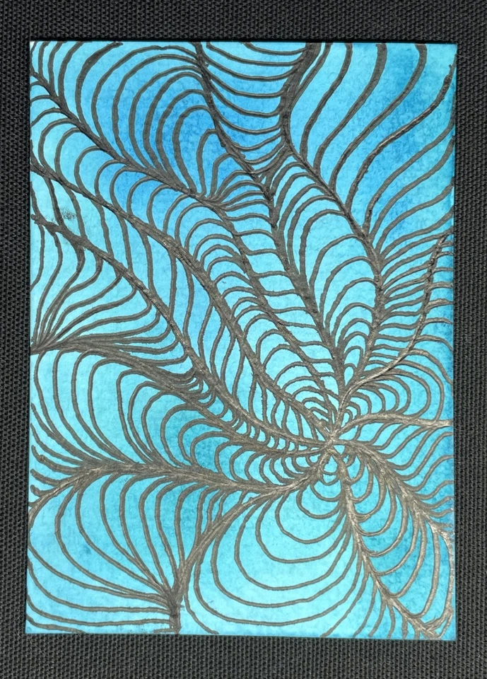 ACEO Original Watercolor & Ink Art Card Floral Vibe 2.5x3.5 by Michele Hackney