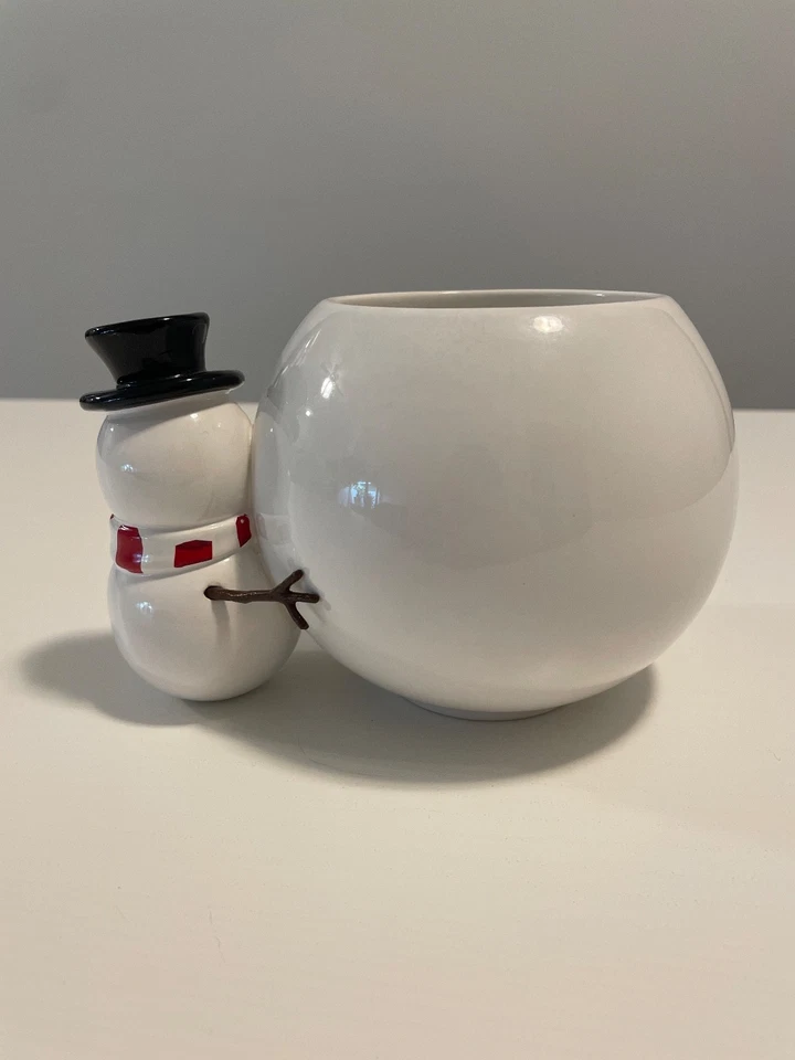 Red and White Glass Snowman Container