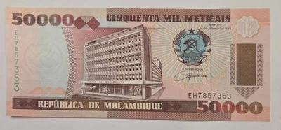 Mozambique 50,000 Meticais 1993,P-138,UNC, Lucky SN with Pairs of 7,5&3 + Gift!