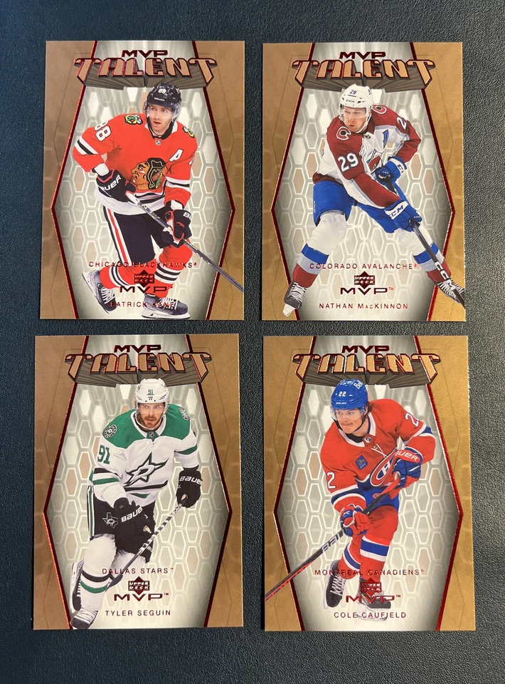 MVP Talent 2023-24 UD MVP 4 Card Lot. KANE, MACKINNON, SEGUIN, and CAUFIELD